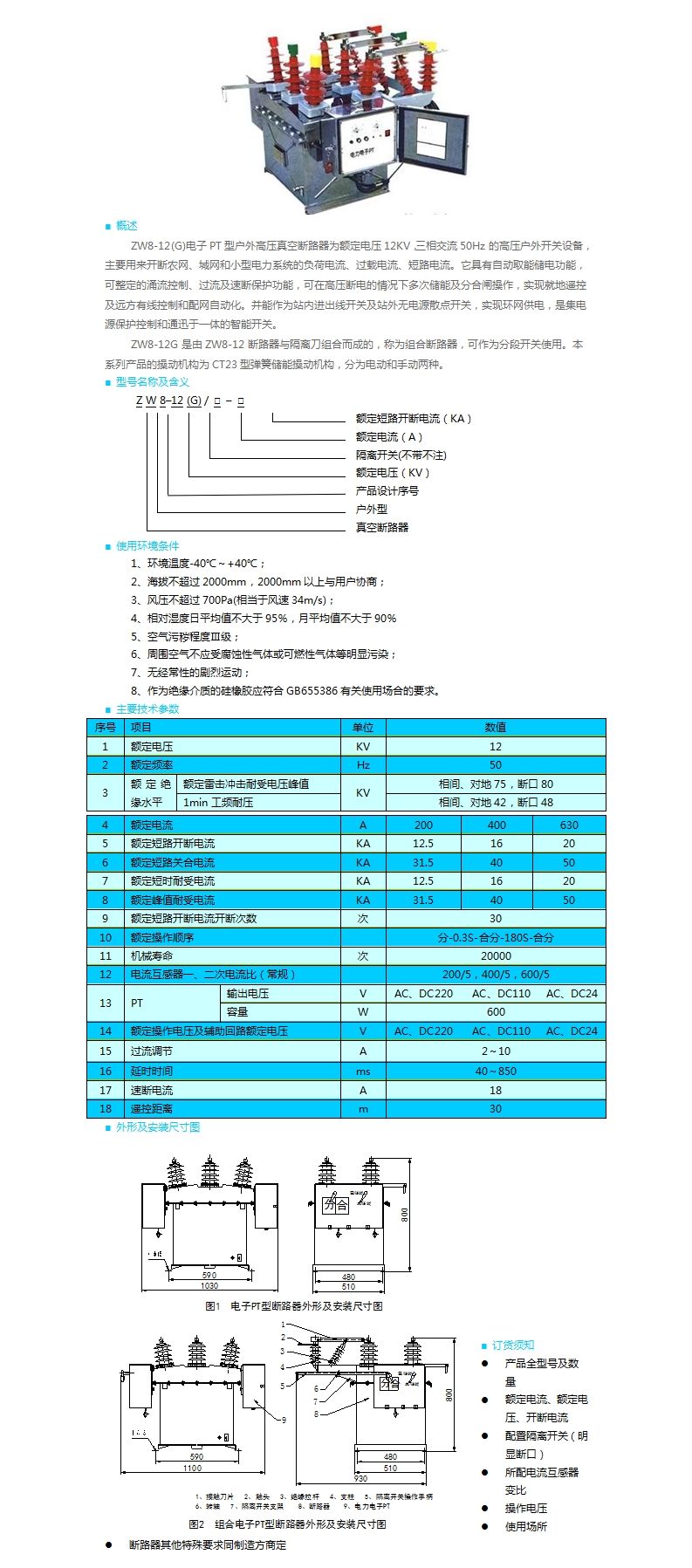 | ZW8-12(G)電子PT型戶(hù)外高壓真空斷路器 | |