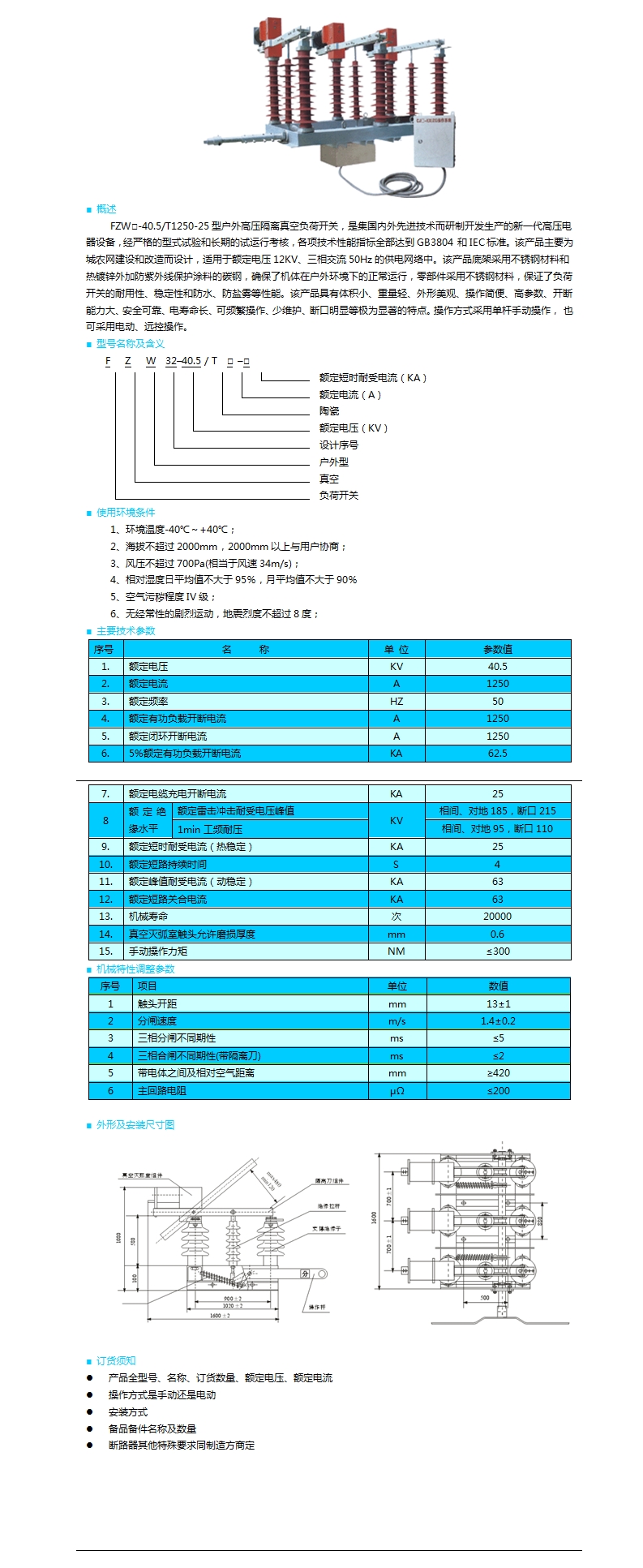 | FZW32-40.5型戶外交流高壓真空負荷開關(guān) | |